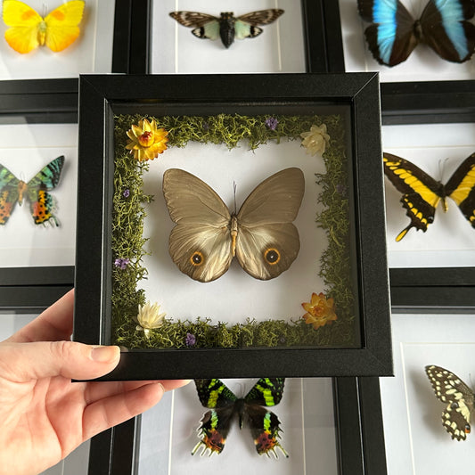 Owl Butterfly (Taenaris urania) with Moss and Florals Frame